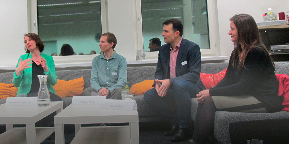 Das Podium mit (v.l.n.r.) Christina Bachmann-Roth, Andreas Ziegler, Moderator Marc Jost und Beatrice Gall.
