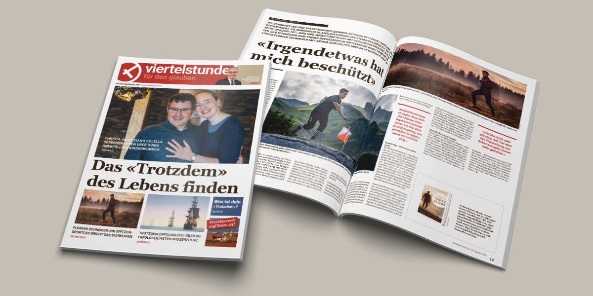 Die Pfingstausgabe der Verteilzeitung «Viertelstunde für den Glauben» mit dem Titel «Das ‹Trotzdem› des Lebens finden» ist bereit. Mit diesem Thema fokussiert sich die Zeitung auf Hoffnung, Resilienz, Geduld, Dankbarkeit und Glauben – Ressourcen, die Menschen benötigen, um Schicksalsschläge und schwierige Situationen zu bewältigen. Wie macht man weiter, wenn plötzlich die Arbeit ausfällt? Wenn man mit Depressionen zu kämpfen hat? Wenn der Kinderwunsch unerfüllt bleibt? Menschen in unterschiedlichen Lebenssituationen erzählen von ihren Kämpfen und wie sie inmitten ihrer Schwierigkeiten zu ermutigenden Perspektiven finden. Denn gerade Pfingsten macht deutlich: Gott lässt uns nicht allein.