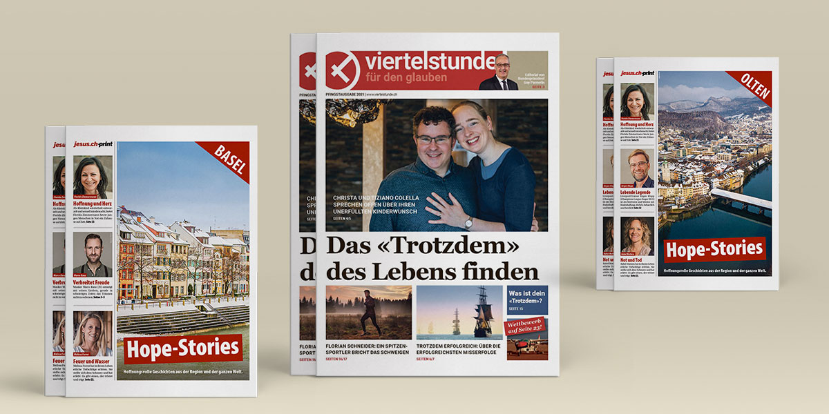 In einer Umfrage zur Zukunft der «Viertelstunde für den Glauben» im Frühling 2020 hat sich eine Präferenz für den Oster- gegenüber dem Weihnachtstermin gezeigt. Zu Weihnachten gibt es zudem mit dem Projekt «24x Weihnachten neu erleben» eine attraktive Alternative mit Beteiligung der SEA, um Menschen mit dem Evangelium in Berührung zu bringen. Und schliesslich deckt Livenet mit Regiozeitungen künftig primär die Zeit ab Pfingsten bis Weihnachten ab, während die SEA mit der «Viertelstunde für den Glauben» jeweils ab Anfang Jahr bis Ostern am Start ist. Die SEA und Livenet beabsichtigen damit, gemeinsam im Jahresverlauf stets mit einer Verteilzeitung präsent zu sein und möglichst die ganze Deutschschweiz zu erreichen. Die verschiedenen Formate – «Hope» sowie «Jesus.ch-Print» von Livenet und die Viertelstunde von der SEA – sollen sich möglichst gut ergänzen.