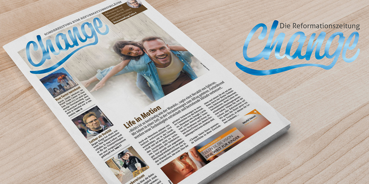 Die Sonderzeitung «Change» ist eine Verteilzeitung anlässlich des Reformationsjubiläums und wird in diesen Tagen in Zusammenarbeit mit Livenet druckfrisch erscheinen.