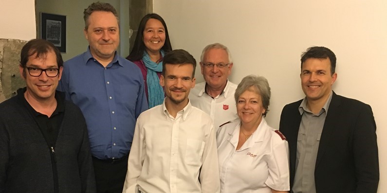 Die Gründungsdelegation (v.l.): Peter Schneeberger (VFG), Linus Pfister (HMK), Christina Sasaki-Wallimann (ethik 22), Michael Mutzner (RES), Paul Mori (Heilsarmee), Chistine Volet (Heilsarmee, Präsidentin des Vereins), Marc Jost (SEA) – es fehlt: Hanspeter Hugentobler (ERF)
